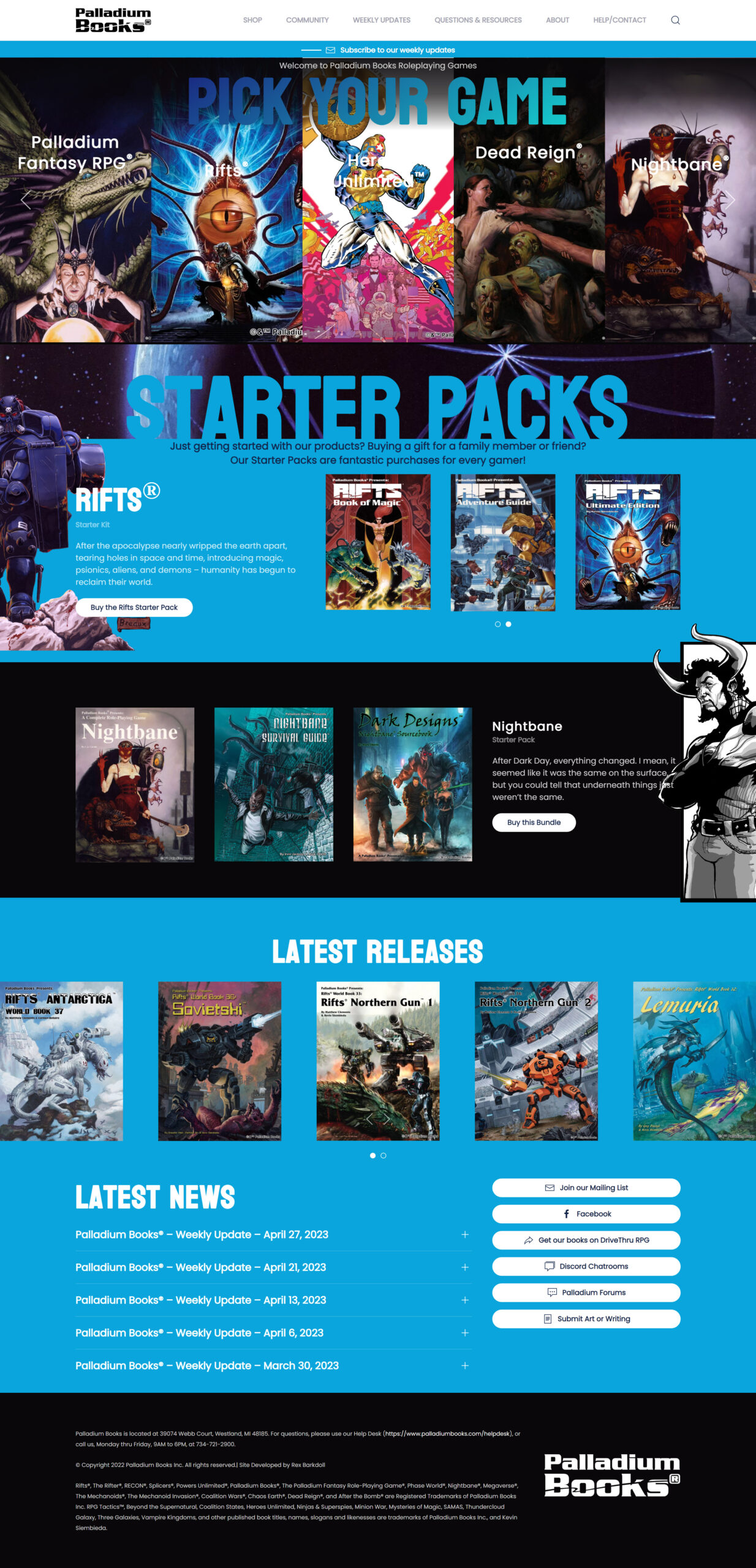 Palladium Books was a dream client for me ever since one of my friends introduced me to their Role Playing Games at 13. I reveled in the worlds Palladium created and my imagination ran wild with characters and campaigns. Role playing games became a wonderful escape for me, yet at the same time, they channeled a lot of my passions into productive efforts. In 2010, I created a new website for them and very hesitantly contacted them to ask if they would be interested in upgrading to it from their very 1999-era website they had at the time. They ended up taking me up on the offer and a relationship formed that has lasted ever since.